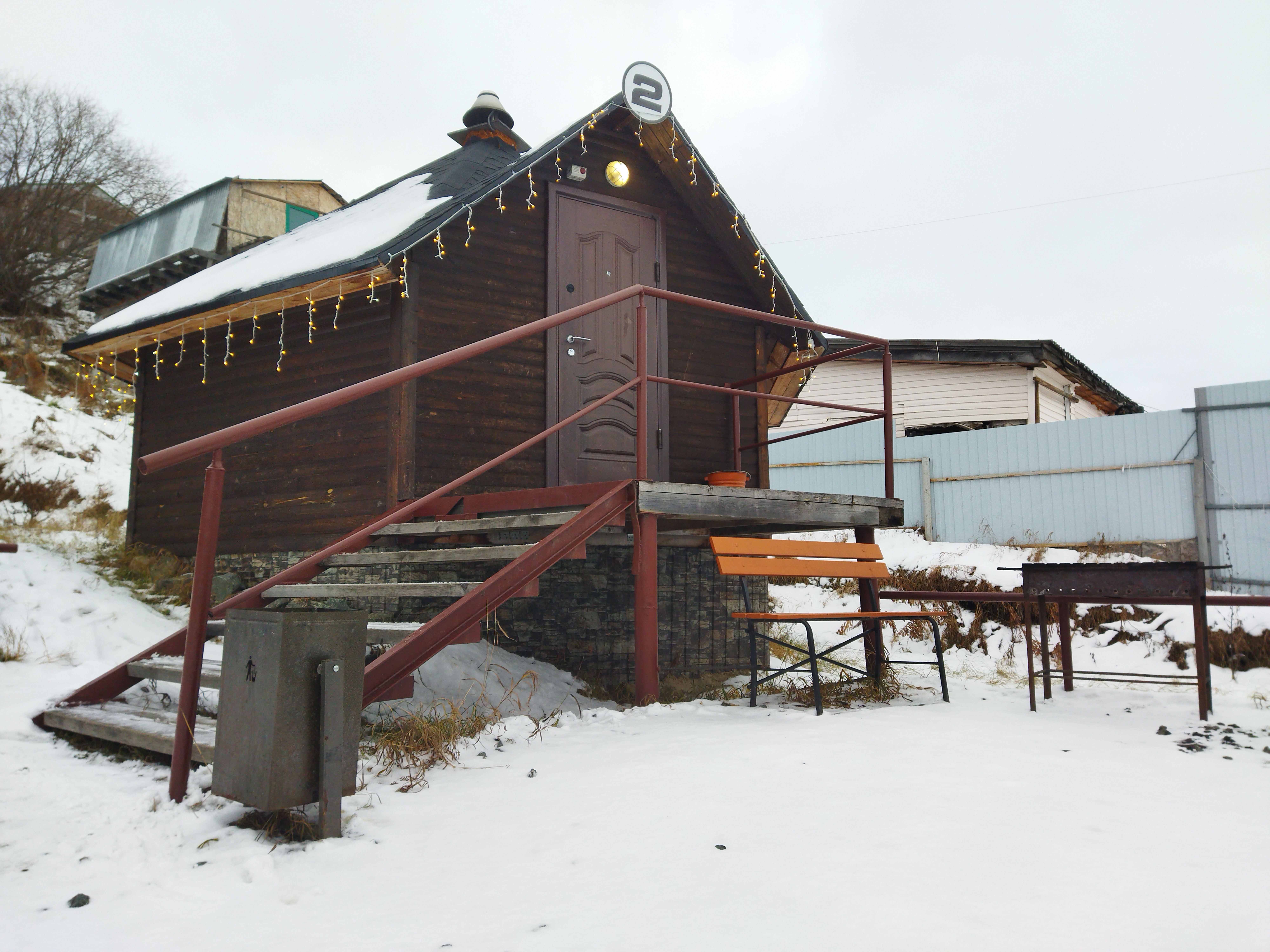 - В домике есть: островное гриль - барбекю, стол, зона кухни, санузел, музыкальная магнитола, холодильник, электрочайник, дополнительный мангал на улице.
