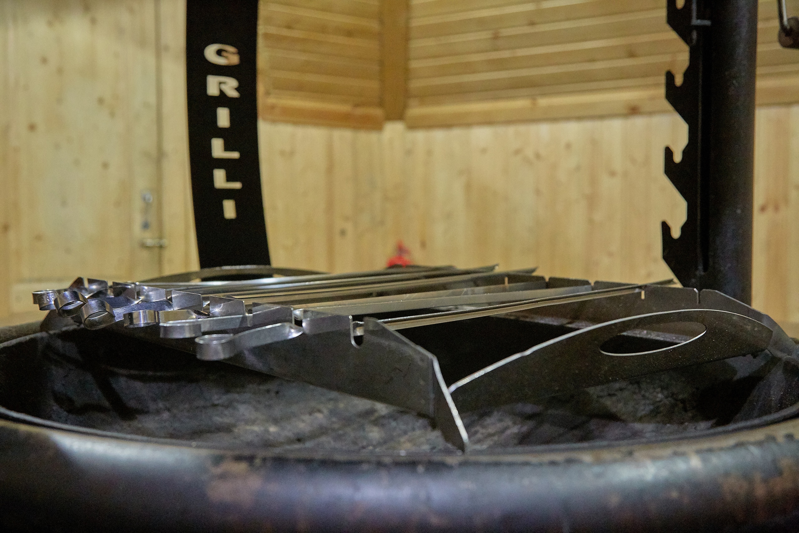 - Оборудование: мешок углей 3 кг, розжиг для углей, шампуры, решетка-барбекю, другие инструменты для гриля, набор посуды.