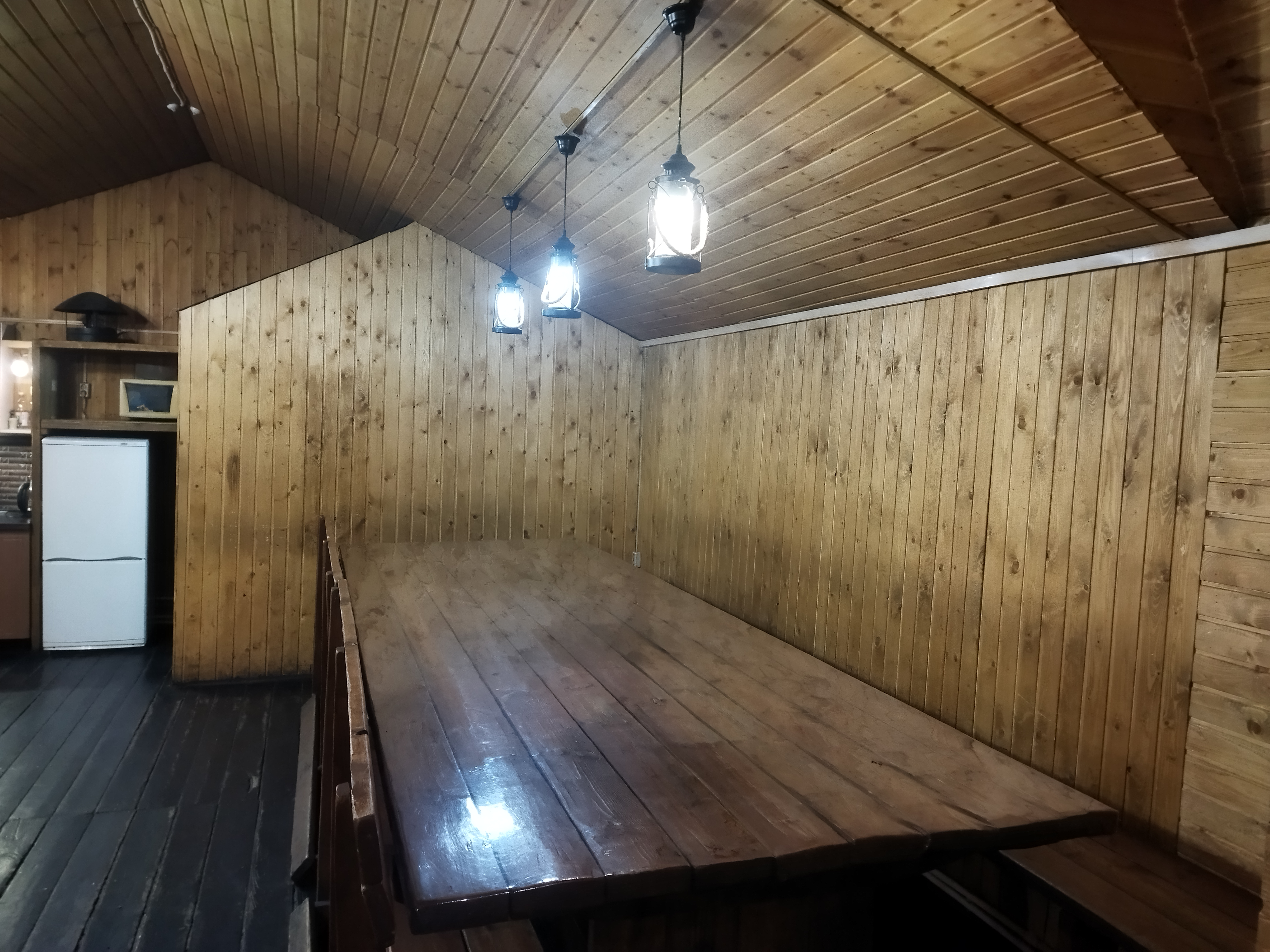 - В домике есть: островное гриль - барбекю, большой стол, кухня, санузел, музыкальная колонка, холодильник, электрочайник, микроволновая печь, дополнительный мангал на улице.